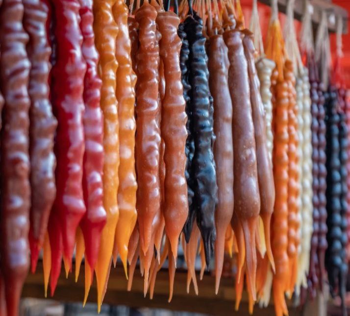 Идём в рыцарскую деревню Арсос🏘 (около получаса езды от Лимассола) делать чурчхелу из свежих грецких орехов и свежевыжатого местного виноградного сока🍇