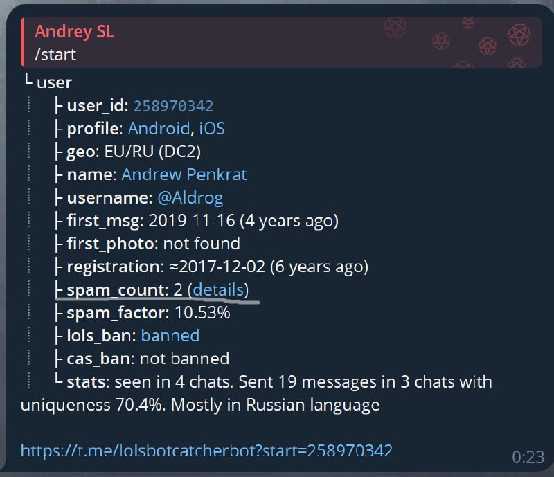 @sLayer_heLLraiserНу как минимум его бот не просто так спамером посчитал
