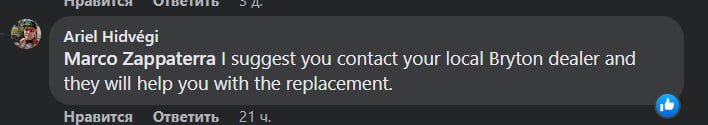 рекомендуют обратиться к локальному дилеру Брайтон для замены