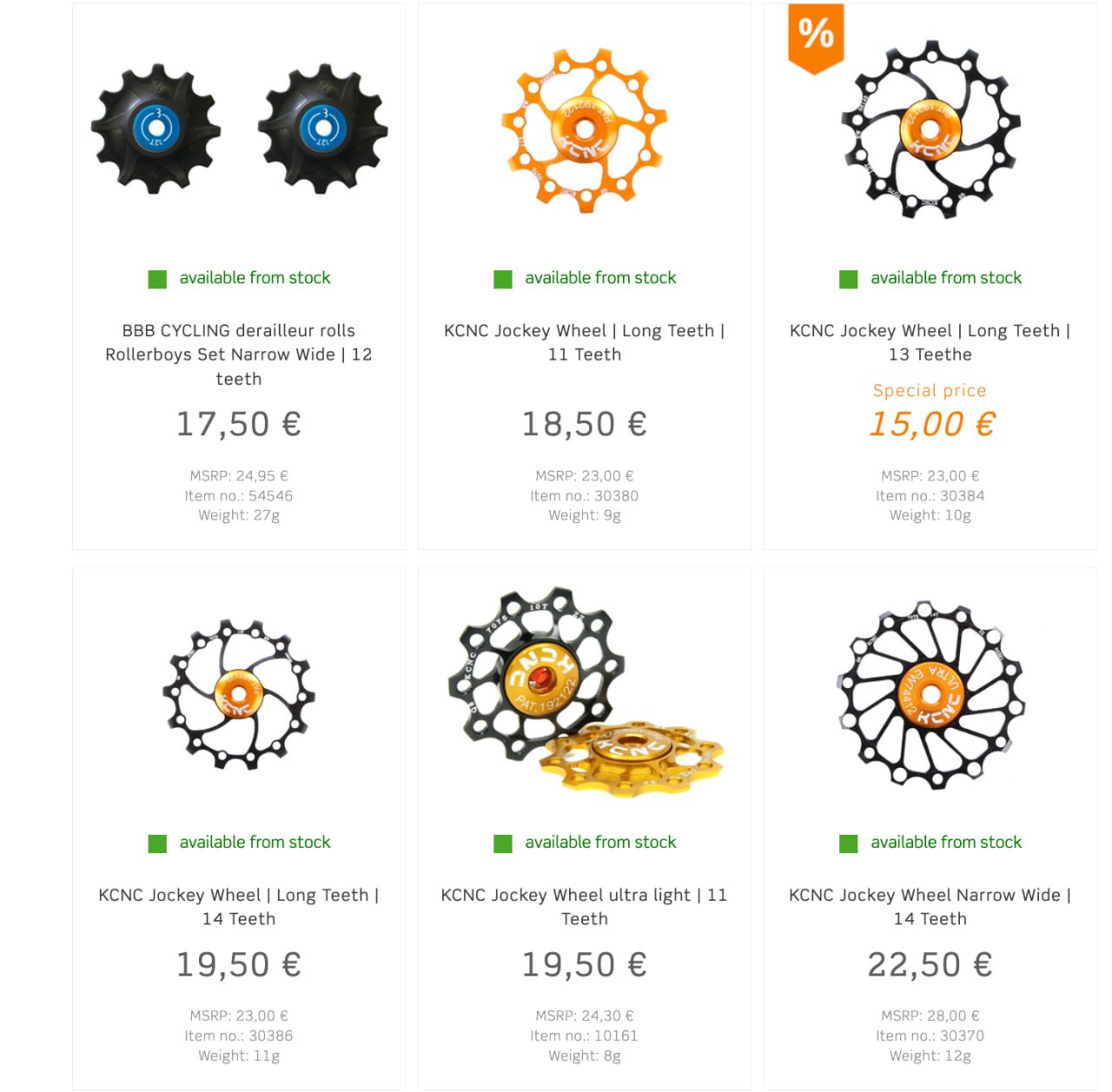 Our derailleur pulleys for SRAM are available in various set options, starting from 12T+14T (upper+lower pulley respectively), for SRAM 11/12-speed rear derailleurs with standard derailleur cage. You can upgrade your standard 11/12-speed SRAM rear mech with our 12T+16T set coupled with Garbaruk RD cage for 11/12-speed SRAM derailleurs for improved shifting quality (configurable on this page, read more about the cage here)
