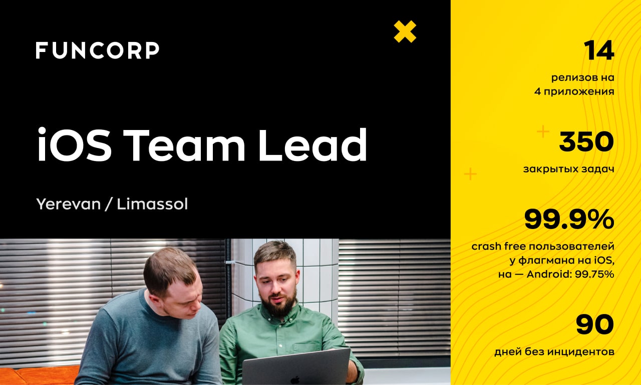 Руководитель мобильной разработки в FUNCORP, Илья Меркулов, ищет к себе в команду iOS тимлида в офис в Лимасоле или Ереване.
