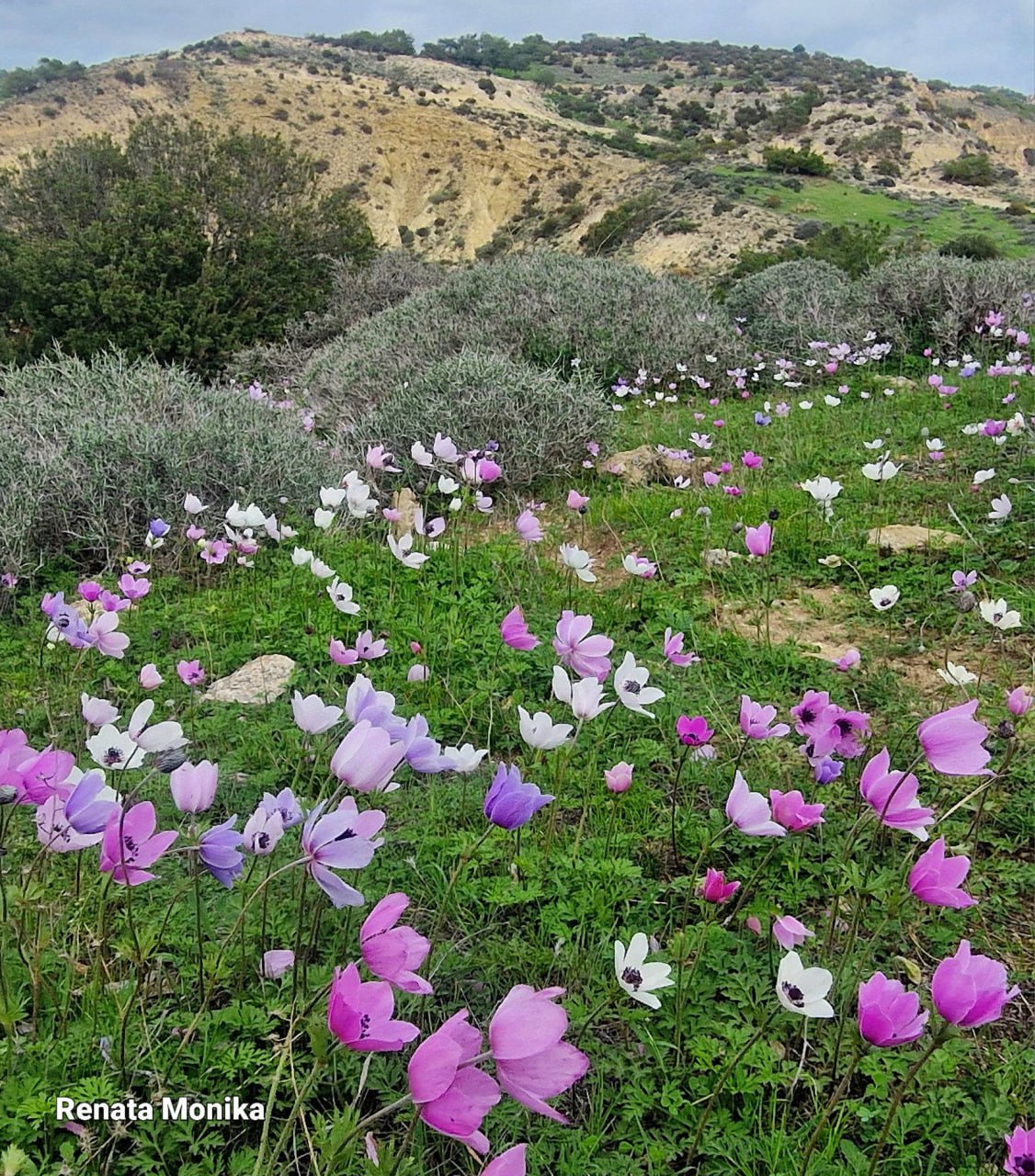 Начало марта - это время цветения анемонов🌷. Они часто растут коврами на холмах. Вот такую красоту можно увидеть на 📍тропе Genesis Aphrodite’s Trail рядом с Писсури.