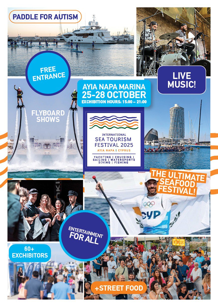Международный фестиваль морского туризма 2025 в Marina Agia Napa: живая музыка, уличная еда, флайборд шоу и другое. Расписание на картинке ⬆️