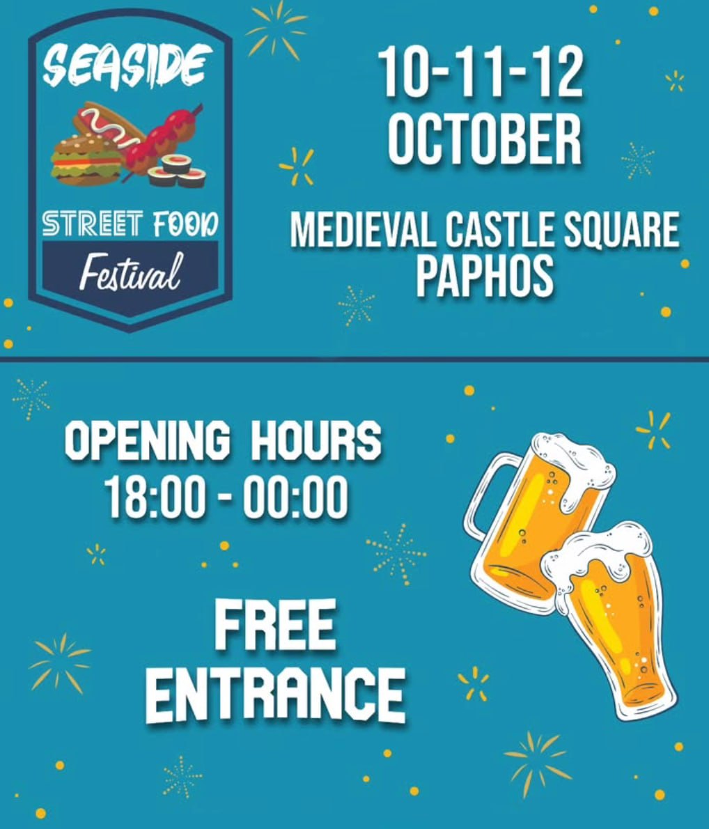 В средневековом замке Пафоса состоится фестиваль уличной еды Seaside: блюда различных кухонь мира, DJs, освежающие напитки, десерты, и другое.
