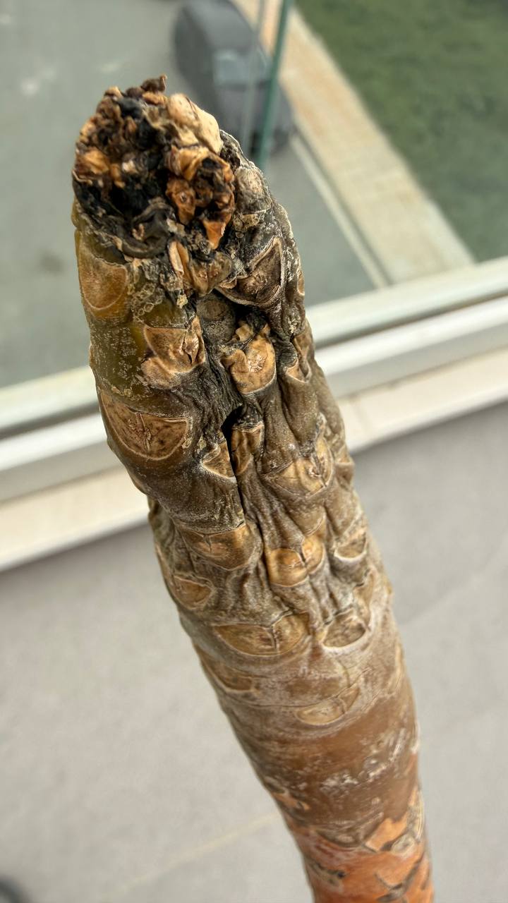 @8417554925Она должна быть на полном солнце.я бы попробовала срезать эту поврежденную часть,пойдет млечный сок,он ядовит как и все части растения.верхушка должна просохнуть.у меня есть плюмерия с розово-фиолетовыми цветами,но в открытом грунте.ну и срезая,нужно оставлять конечно снизу не менее 50 см