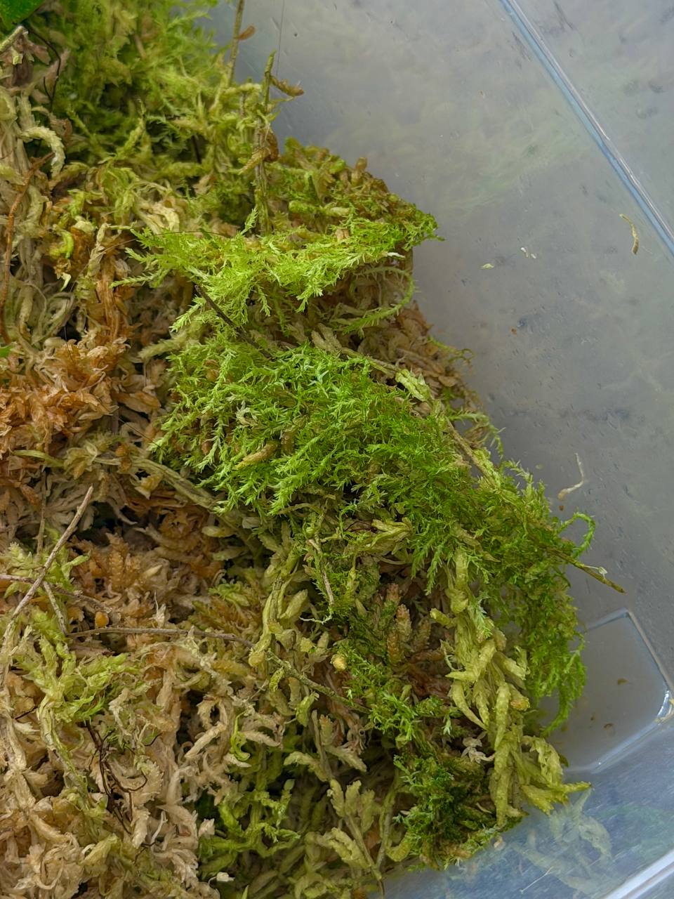 Да, это новозеландский мох из ранка. Просто держу слегка влажным в закрытом ящике(он именно не прям мокрый) + свет. Изначально он стоял под столом около окна, потом я через пару месяцев поставила под досветку ненадолго, потом опять куда-то на пол в угол, но суть в том, что свет всегда попадает, пусть в не очень большом количестве. Первые 3 месяца вообще ничего не происходило, потом стал прорастать(до этого ток водоросли зеленели). Сейчас ему 1,5 года)))
