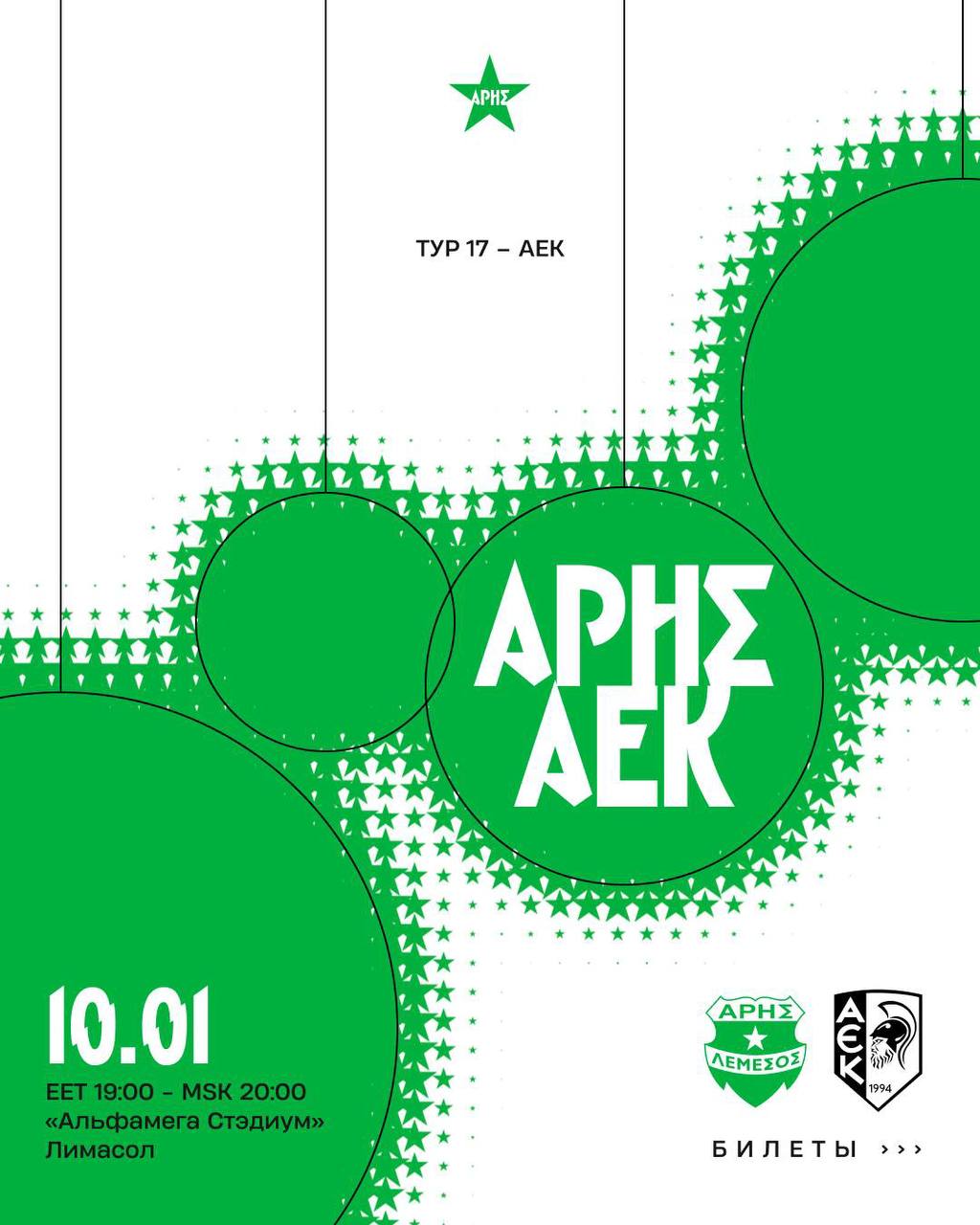 ⚽️ Домашний матч «Арис» — «АЕК», 10 января, суббота, 19:00