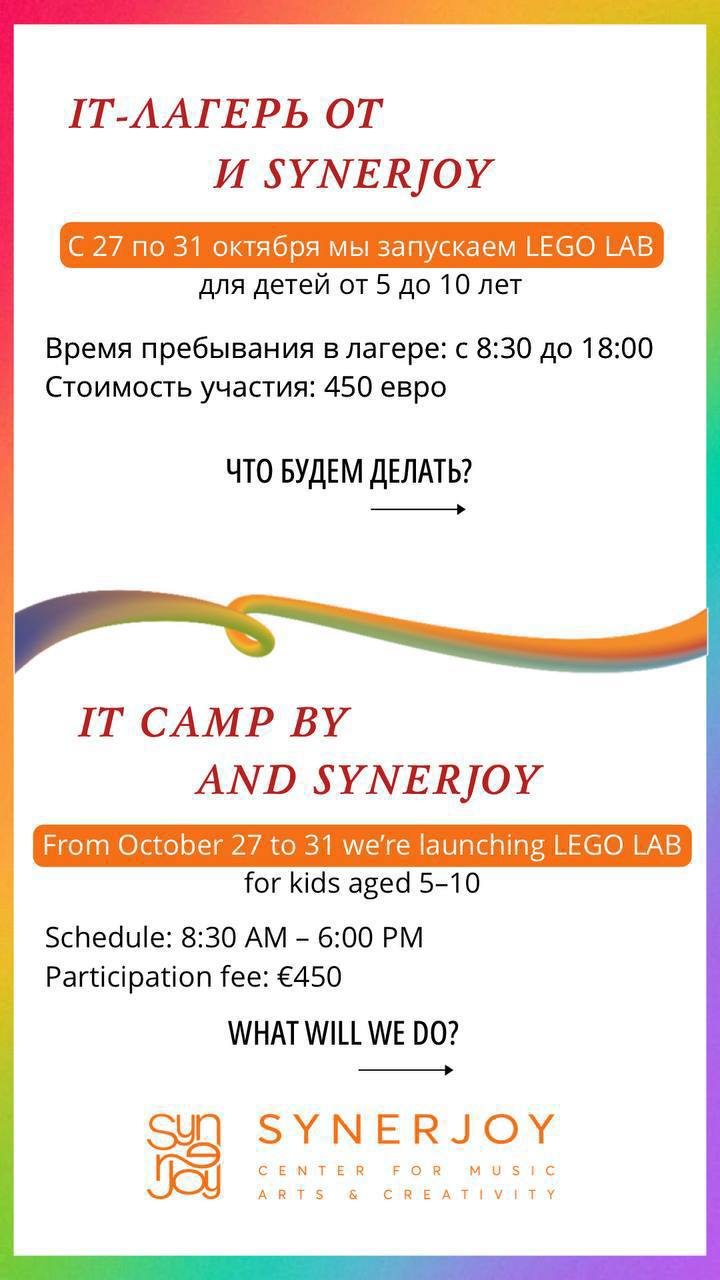 A&C и SynerJoy приглашают ребят от 5 до 10 лет в IT-лагерь, который стартует уже совсем скоро — с 27 по 31 октября.