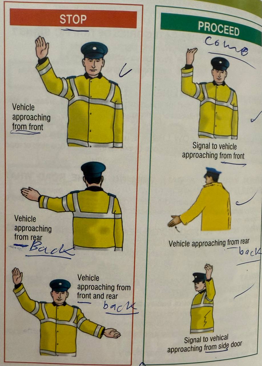 Здравствуйте, планирую сдавать экзамен теории, можете подсказать где более детально почитать про сигналы в книжечке полицейского руками? А то сигналы описывают что делать для движения спереди/сзади, но что делать траффику сбоку не сказано, кроме одного момента когда полицейский стоит боком. Какие сигналы соответствуют тому что сайд трафик должен остановиться?