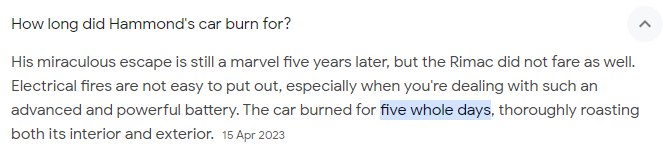 Так же были случаи когда уже потушенные тачки повторно воспламенялись