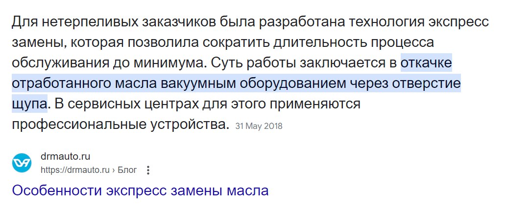 проблема в том, что откачка масла занимает столько же времени, сколько и открутить горловину и слить его. Проблема в том, что в яму не удобно ставить тару для слива масла. По сути они красиво прикрывают отсутствие подъемника.