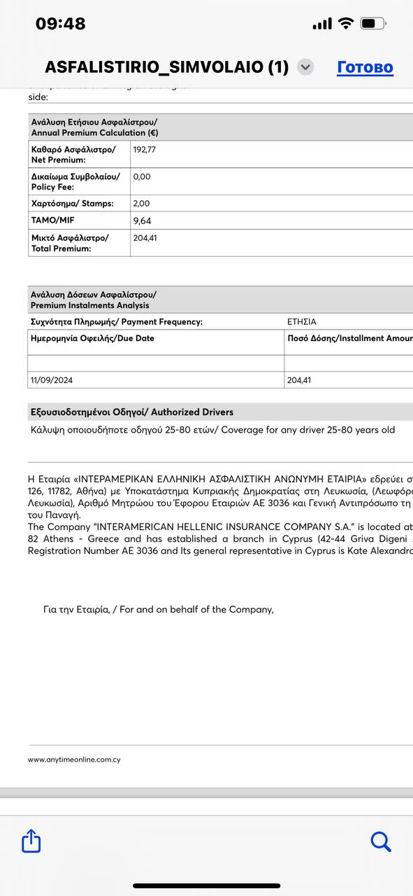 Если не ошибаюсь, то я могу например водить машину человека, если у меня тоже есть автомобиль на Кипре и водительское удостоверение Кипра, и естественно обе машины застрахованы, примерно так, могу ошибаться в деталях, но суть в том, что иногда не надо быть вписанным в страховку, чтобы ездить на чужой машине.
