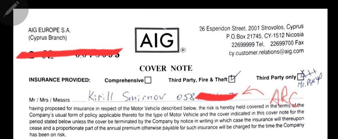 @1811508888Всем привет. Я тут общаюсь с одним продавцом, с которым мы должны будем поехать оформляться а Road Department в Никосии, и он утверждает, что Road Department дал ему инструкции, что на моем страховом полисе должен быть явно пропечатан номер ARC.