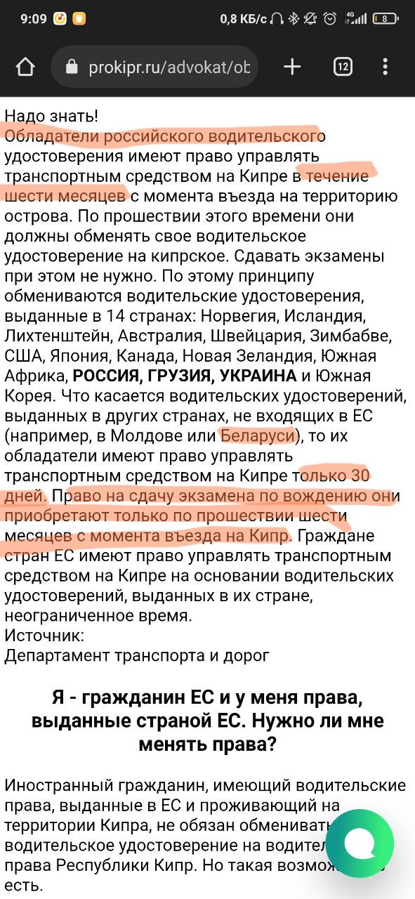 @GrandcyУважаемые знатоки) если происходит авария и вы в ней виноваты а у вас права не кипрские и вы на Кипре больше пол года, то страховка может отказаться в страховании. Говорю это не из воздуха как многие здесь, а из опыта!!
