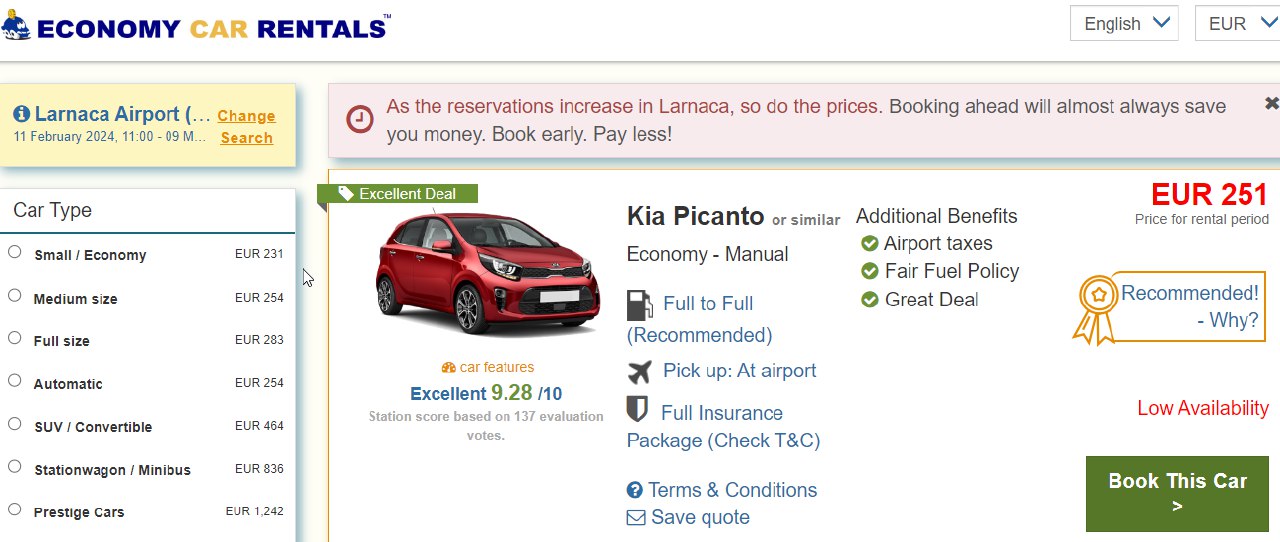 Аналогично. 5 лет назад брал ниссан микра, на 10 дней, за 90 евро