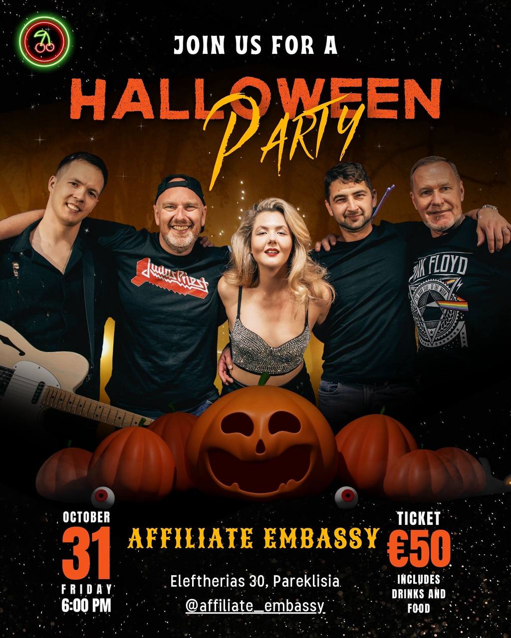 #CherryAndDaddies #AffiliateEmbassy #HalloweenParty #LiveMusicCyprus #LimassolEvents #RockAndFunk #PartyTime #LastPartyOnTheVilla