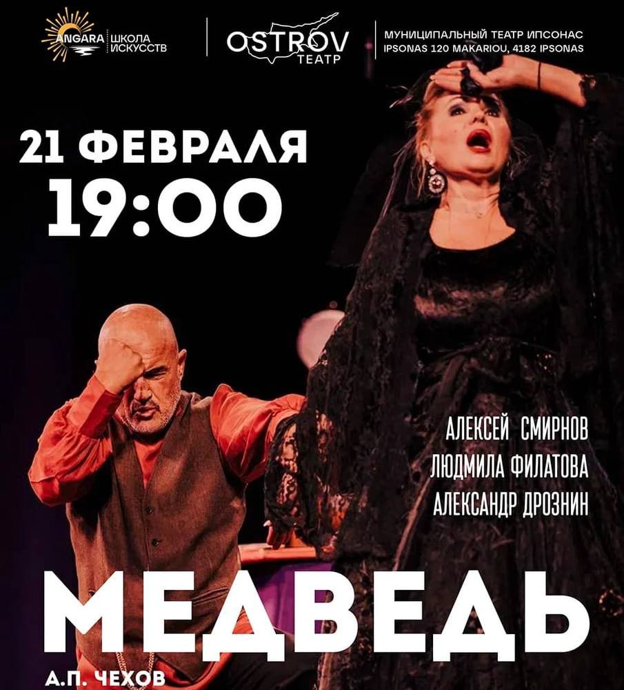 @Alextelegram9🎭РОЗЫГРЫШ 2 БИЛЕТОВ от канала Cyprus Afisha на спектакль «Медведь» по А.П. Чехову