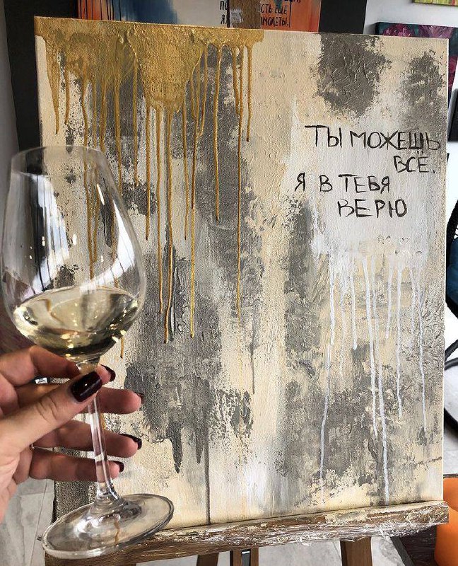 На встрече “Vine&Art”можно нарисовать картину на любую тематику, выбрать референс и создать свой первый шедевр под чутким руководством художницы