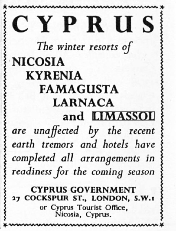 Реклама, созданная правительством Кипра, ноябрь 1953 года