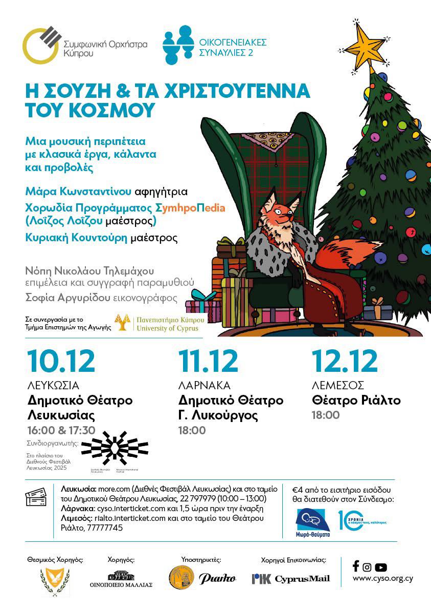 Под освещенными снежинками залами Лимассола и Пафоса позвольте музыке перенести вас в праздничный мир тепла, ностальгии и радости.