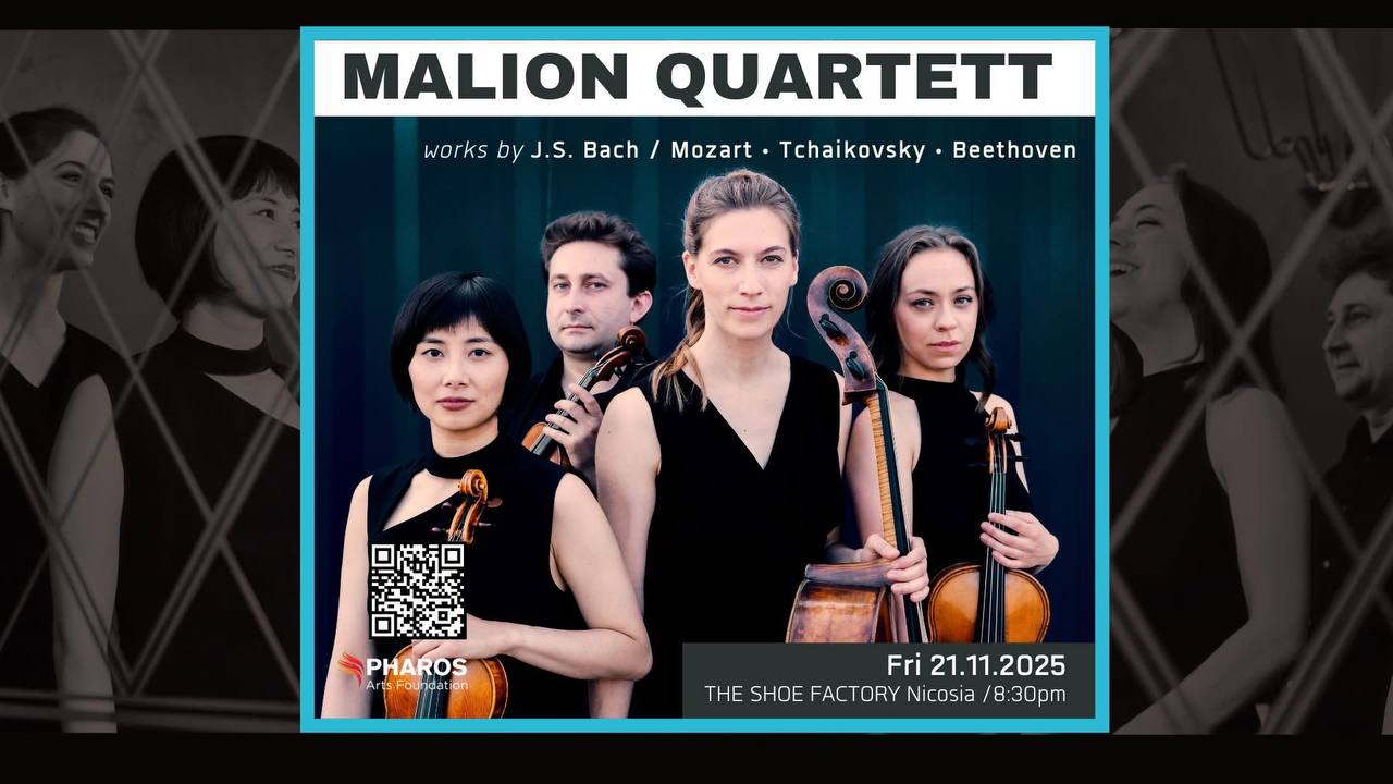 Кипрский дебют Malion Quartett пройдет с увлекательной программой, которая продемонстрирует непревзойденную виртуозность квартета. Прозвучат произведения И.С. Баха, Моцарта, Чайковского и Бетховена.