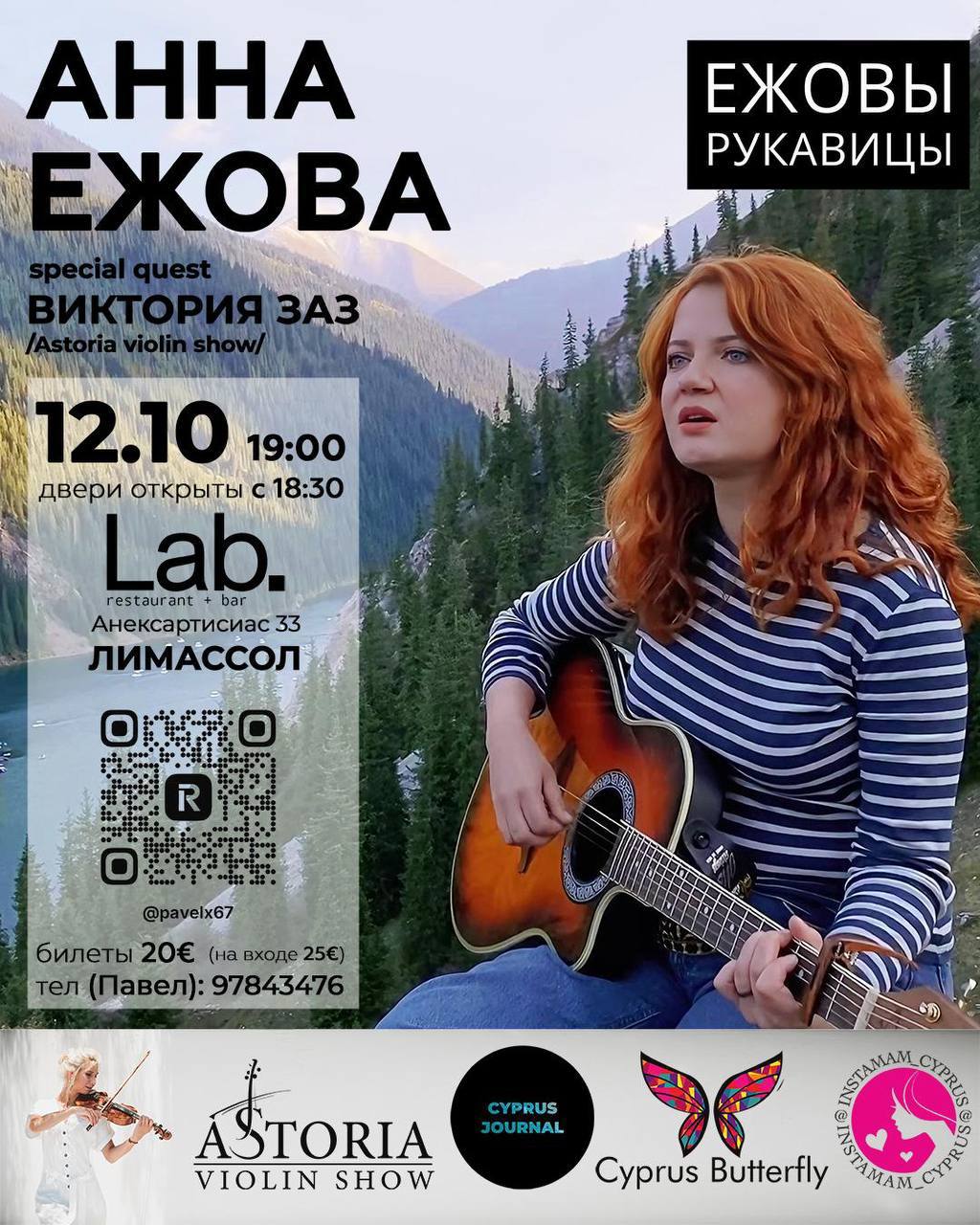 Впервые в Лимассоле – Анна Ежова (автор и голос группы «Ежовы Рукавицы», Санкт-Петербург-Алматы) с программой «Наступил на мир медведь – но я буду дальше петь!».
