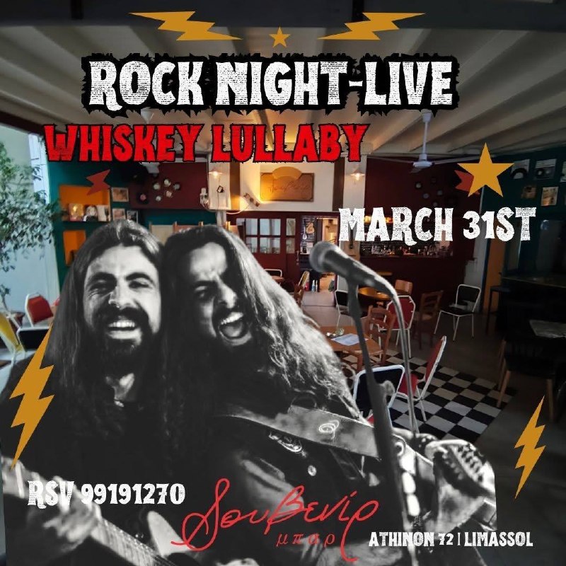 Дуэт Whiskey Lullaby — Мариос Николау и Джордж Ривест — снова выходит на сцену с любимыми хитами из золотой эпохи рока. От Metallica, Dio, Ozzy и Pearl Jam до The Doors, Pink Floyd, System of a Down