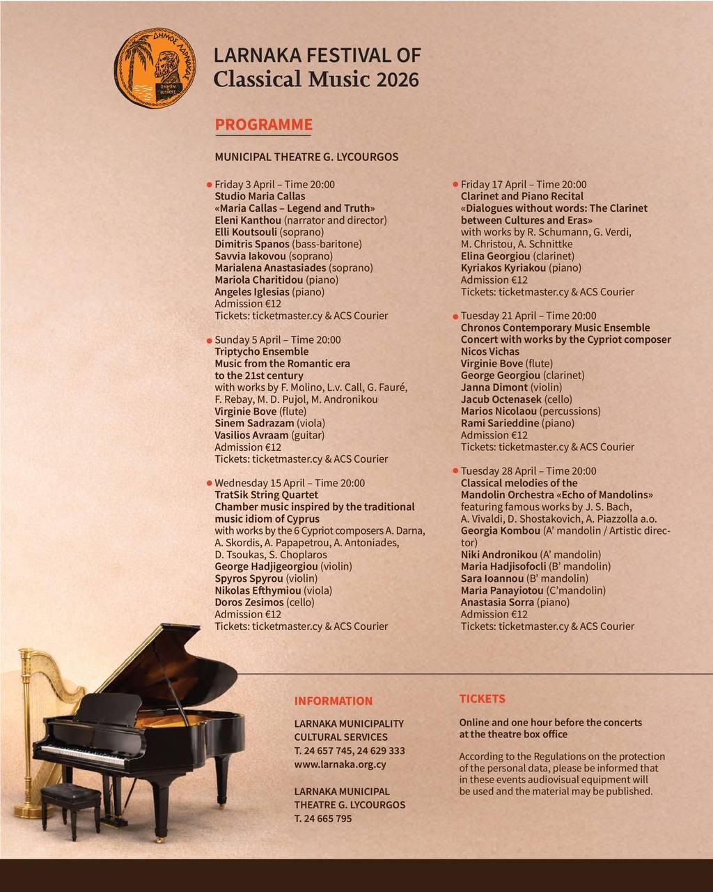 В концерте примут участие выдающийся кипрский артист Манолис Неофиту (фортепиано) и Вакия Ставру (вокал). Программа включает в основном французские песни.