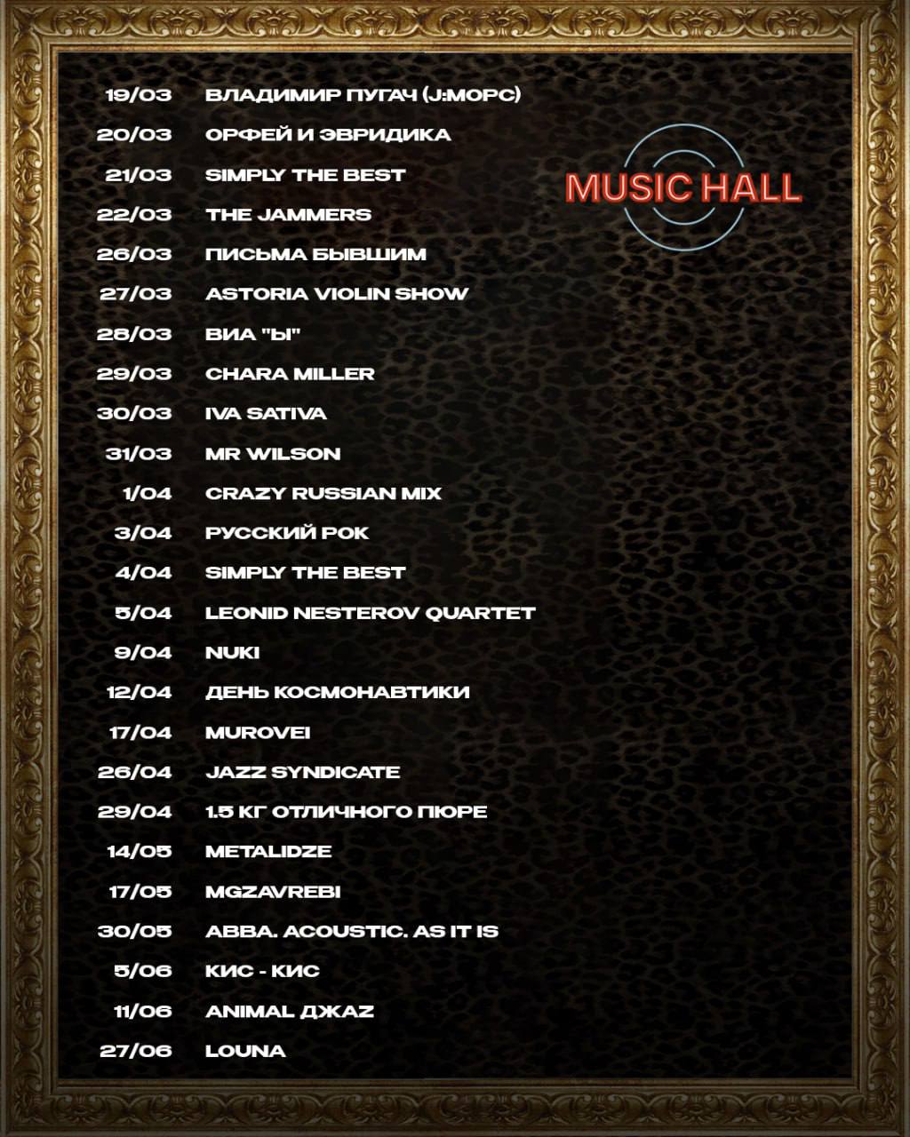 📅MARCH 18 and ALL WEDNESDAYS further , Music Hall https://t.me/livemusichall