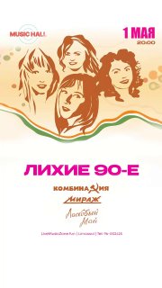 1 мая, ПТН 20:00 - ЛИХИЕ 90е! Первомай с вашими любимыми песнями групп Комбинация, Мираж, Ласковый Май ждем на нашей дискотеке большими и малыми компаниями 🥂