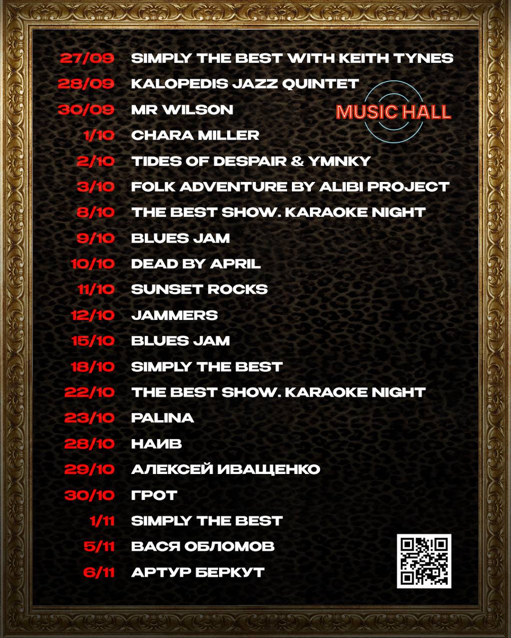 📅Saturday September 27, Music Hall https://t.me/livemusichall