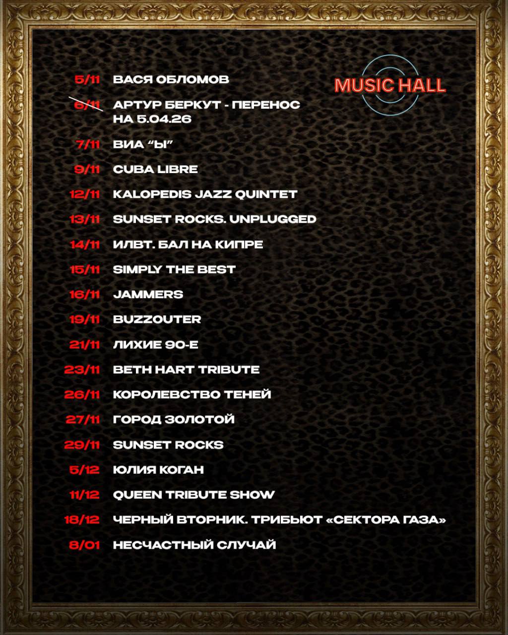 📅 7 Ноября, Music Hall https://t.me/livemusichall